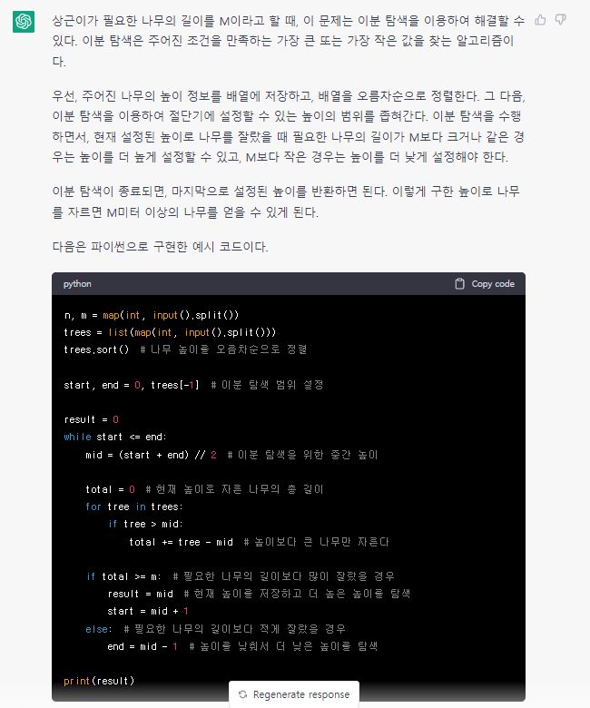 무슨 알고리즘을 사용해야 하는지까지 귀신같이 알고 설명해줍니다. 예시 코드까지 보여주네요. 지피티야.. 니가 나보다 낫구나..^^
