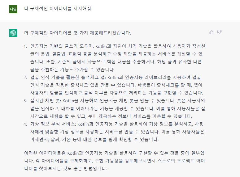 3) 사이드 프로젝트에 대한 아이디어도 제공해줍니다.